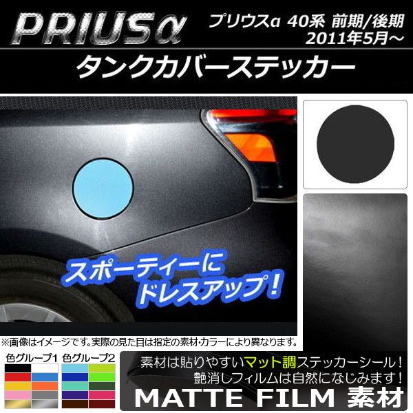 タンクカバーステッカー マット調 トヨタ プリウスα ZVW40/ZVW41 前期/後期 2011年05月〜 色グループ1 AP-CFMT235 色グループ1: ブラック ホワイト レッド ブルー イエロー オレンジ ピンク グレー ゴールド シルバー