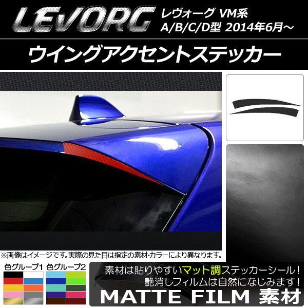 ウイングアクセントステッカー マット調 スバル レヴォーグ VM系 A/B/C/D型 色グループ1 入数:1セット(2枚) AP-CFMT1505 色グループ1: ブラック ホワイト レッド ブルー イエロー オレンジ ピンク グレー ゴールド シルバー