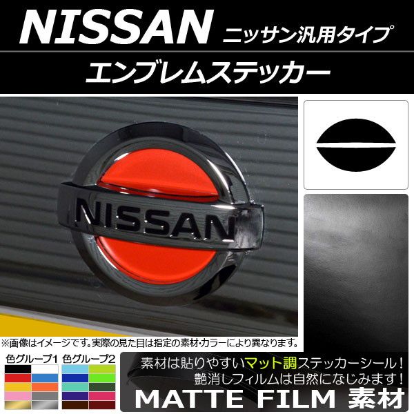 エンブレムステッカー マット調 ニッサン汎用タイプ フロント/リアどちらかに使用可能!(詳しくは画像でサイズをご確認ください) 色グループ1 AP-CFMT1914 色グループ1: ブラック ホワイト レッド ブルー イエロー オレンジ ピンク グレー ゴールド シルバー