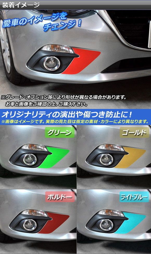 フォグサイドステッカー マット調 マツダ アクセラ スポーツ/セダン/ハイブリッド BM系/BY系 前期 色グループ1 入数:1セット(2枚) AP-CFMT1467 色グループ1: ブラック ホワイト レッド ブルー イエロー オレンジ ピンク グレー ゴールド シルバー