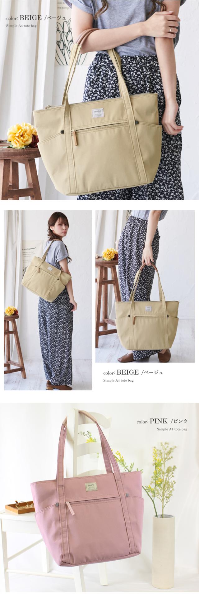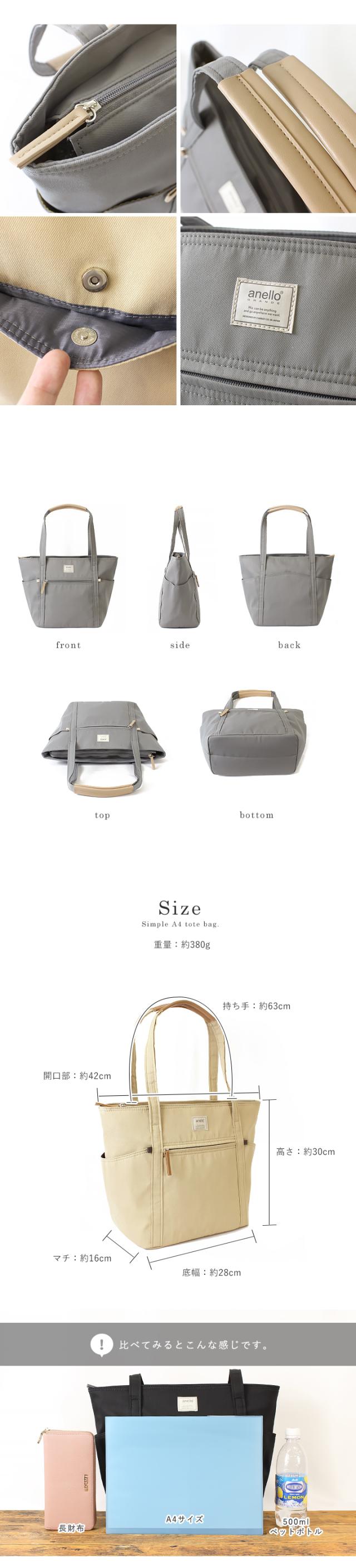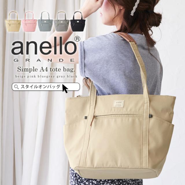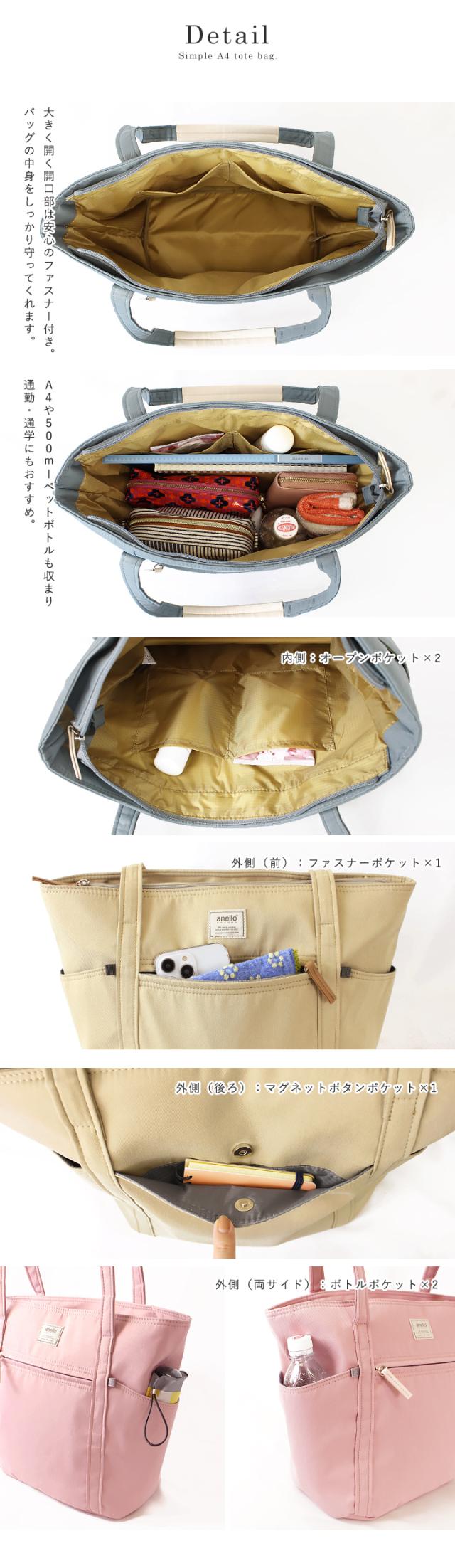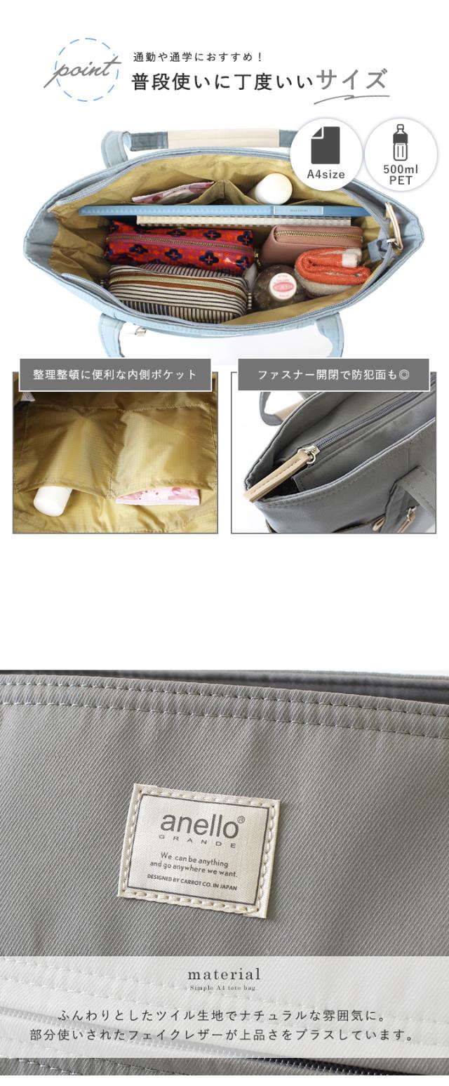 anello トートバッグ レディース 長めハンドル A4 大きめ トート 軽量 大容量 アネロ メンズ ユニセックス シンプル カジュアル 通学 通勤 ツイル生地 おしゃれ ナチュラル ほんのり丸み ボトルポケット付き 無地【m0553】