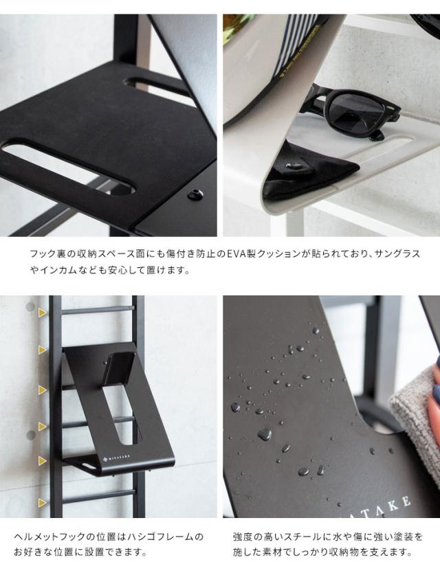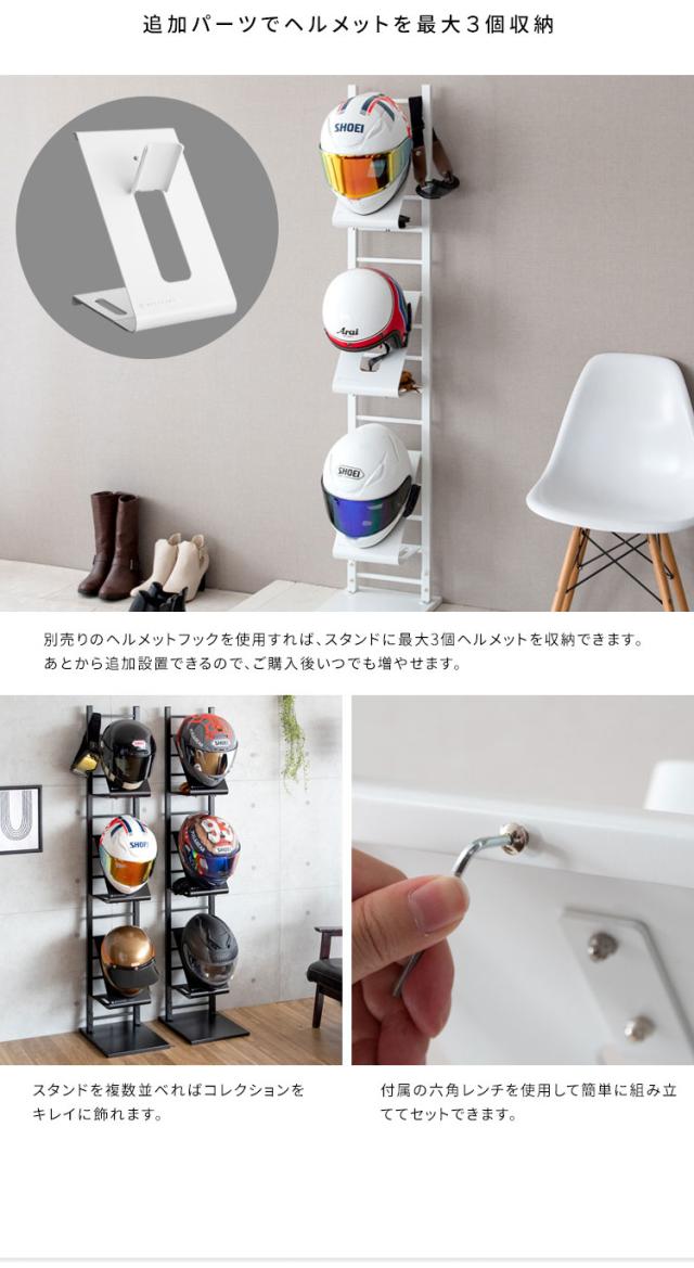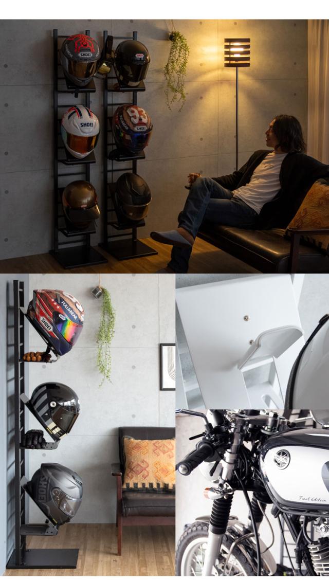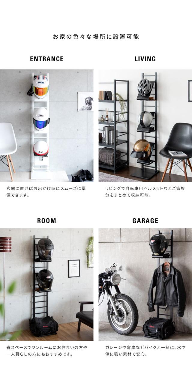 ホワイトとブラックの2カラーをご用意。お好みやお部屋の雰囲気でお選びください。バイカーはもちろん、努力義務となった自転車のヘルメット収納にもぴったり。ご家族でお使いいただけます。