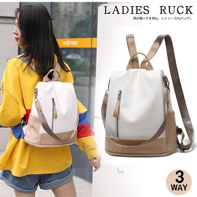 リュックサック 大容量 3way デイバック 配色 レザー ショルダーバッグ レディース 肩掛け 大きめ 軽い 通勤 通学 大容量 ショルダー