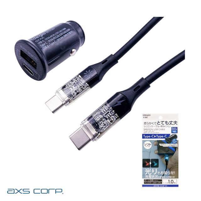 アークス 光る お知らせソフトケーブル+チャージ TyepC+USB-A ケーブル付 インジケータLED ソフト素材 充電ケーブル X-283