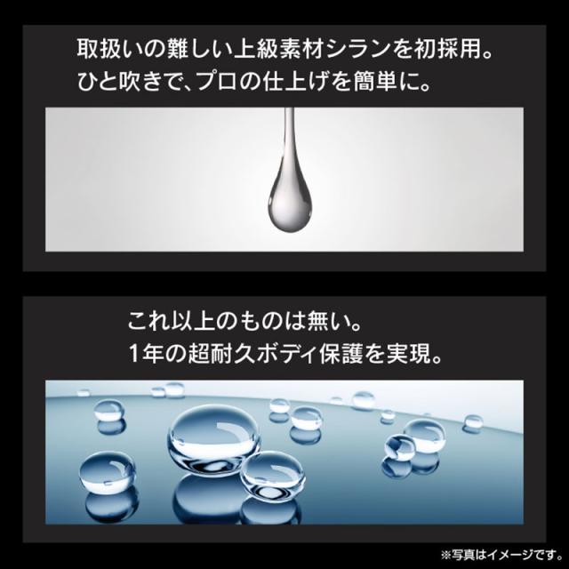 シランと撥水レジンのW効果でウォータースポット、イオンデポジットのダメージからボディを守ります。