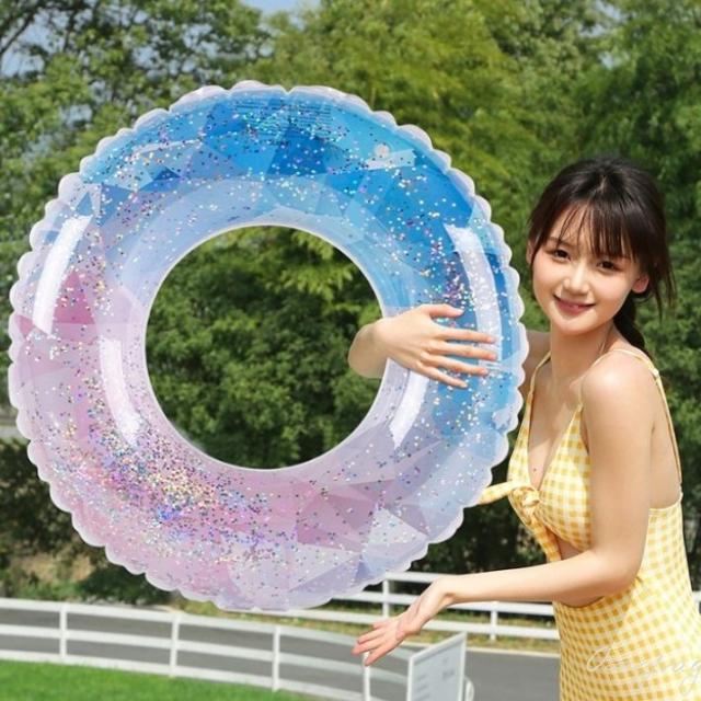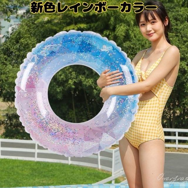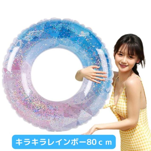 浮き輪 大人 子供 共用サイズ 80cm キラキラ 半透明 おしゃれ シンプル ピンク ブルー レインボー 楽しい プール ビーチ 海水浴 大きいサイズ スタイリッシュ キュート かわいい カラフル 目立つ 水遊び ウォーターレジャー sns インスタ 映え プレゼント 送料無料