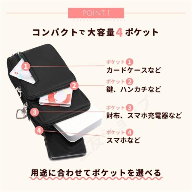 お客様が不良品といわれる場合でも使用上問題のない場合は返品交換などは出来かねます。お出掛けの際にスマホやカード類等必要なものが、全部入る便利なポーチです。