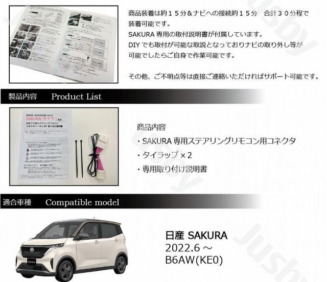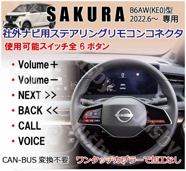 日産 サクラ SAKURA用 社外ナビ用 ステアリングスイッチコネクタ ステアリングリモコン 変換 アダプター CAN-Bus不要でカプラーオン 加工無し!