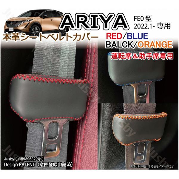 日産 アリア ARIYA FE0型 本革シートベルトカバー(前席用)レザーカバー 赤 青 黒 オレンジ ステッチ ドレスアップパーツ アクセサリー NISSAN ARIA