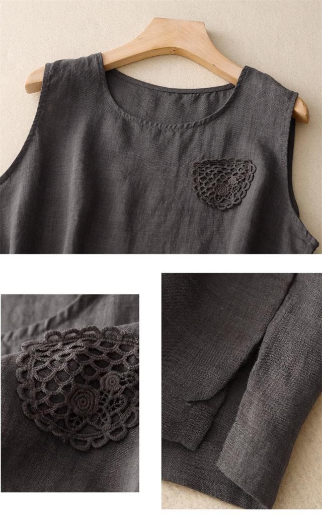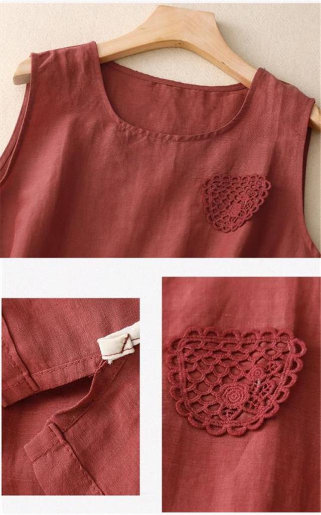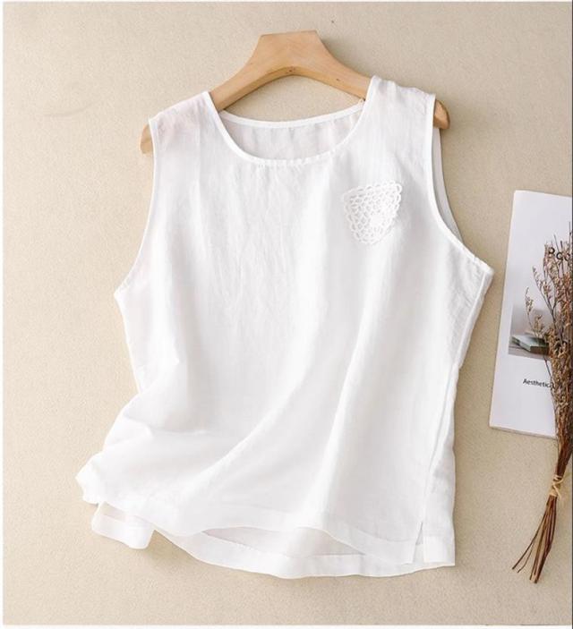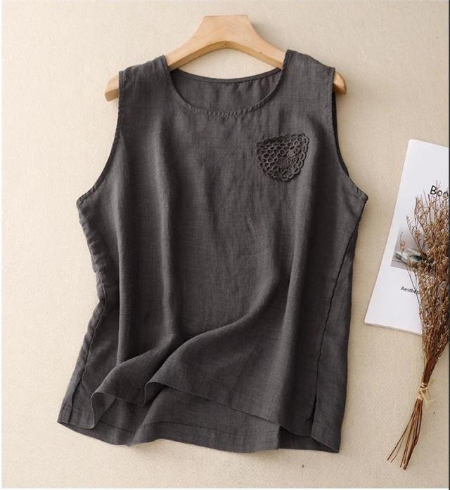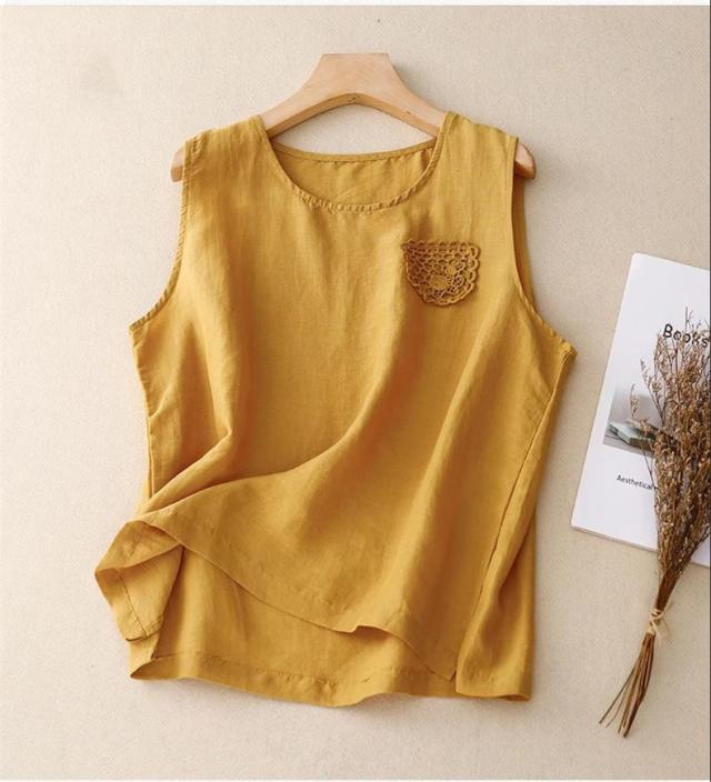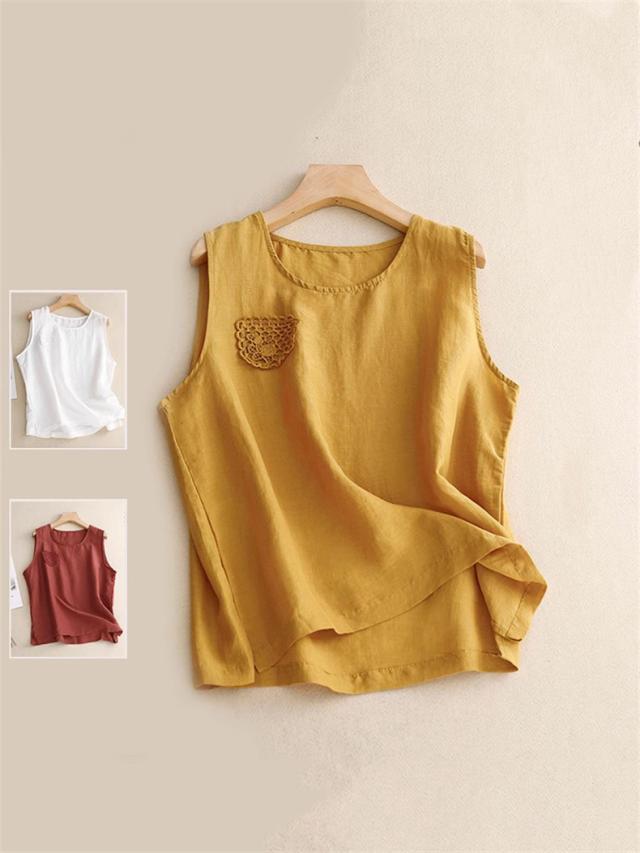 トップス ノースリーブ シャツ レディース 丸首 無地 大きいサイズ シンプル 綿麻 サラッとしていて夏にぴったりの着心地 おすすめ