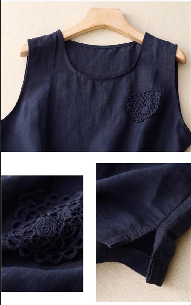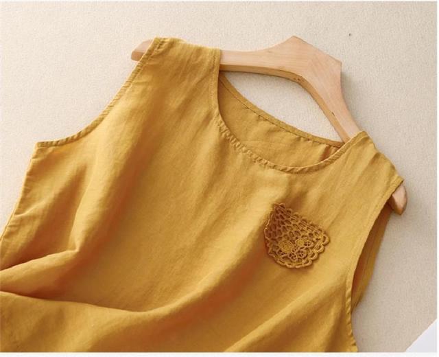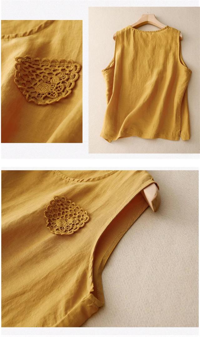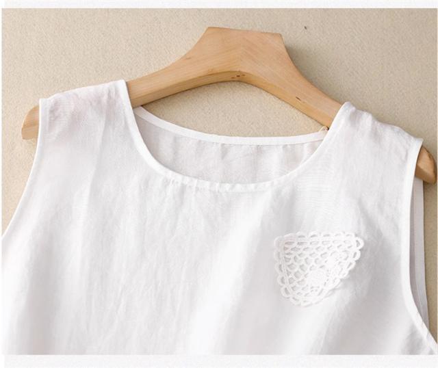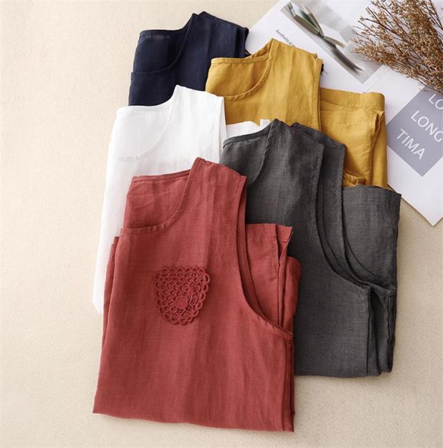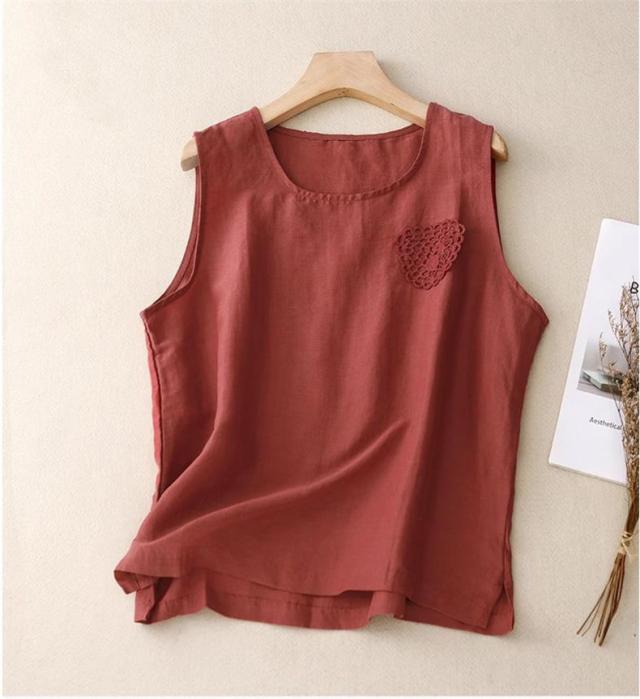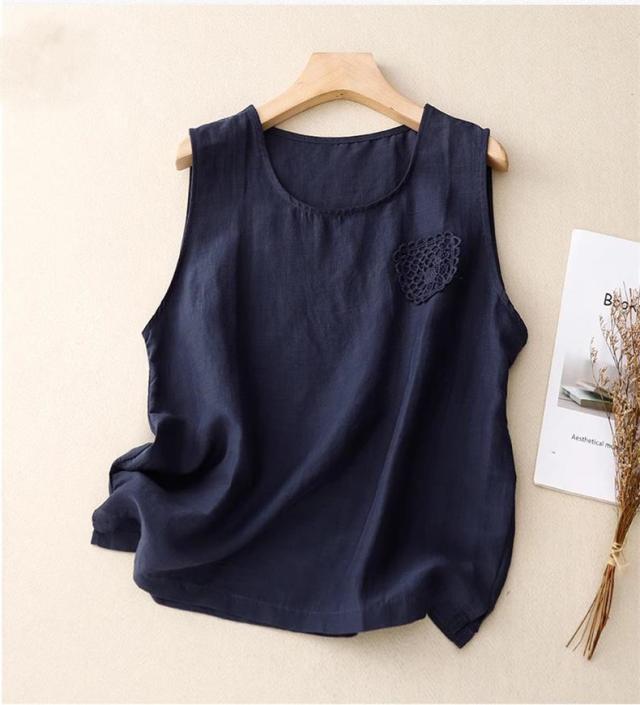 トップス ノースリーブ シャツ レディース 丸首 無地 大きいサイズ シンプル 綿麻 サラッとしていて夏にぴったりの着心地 おすすめ