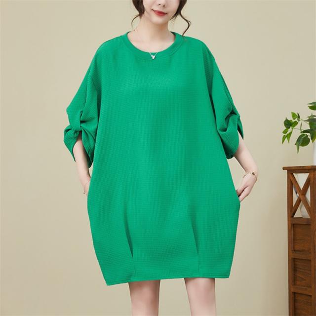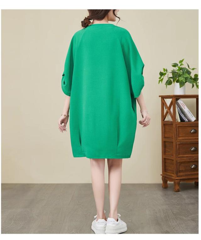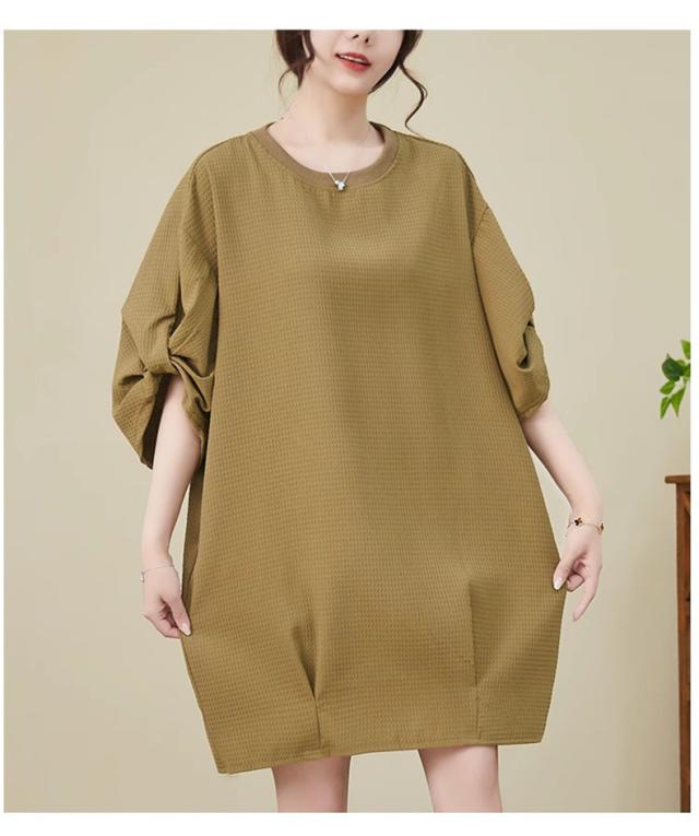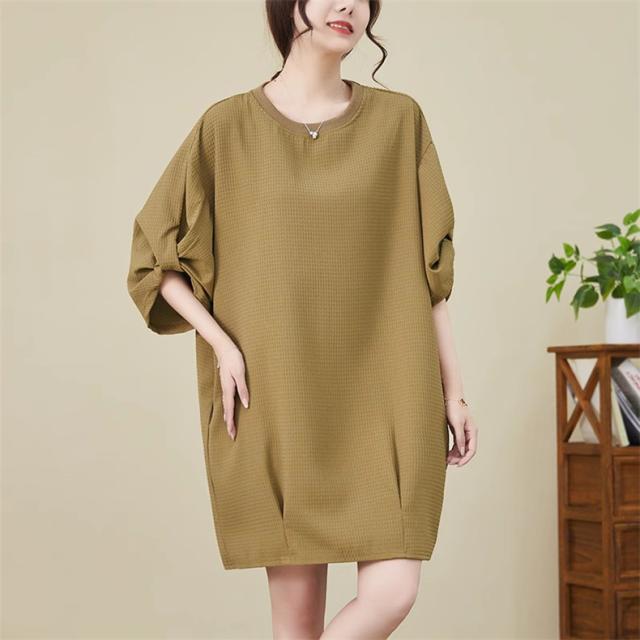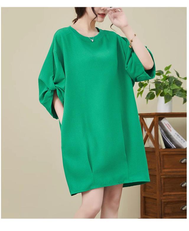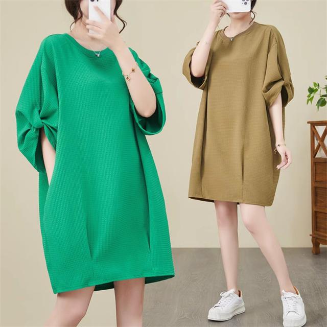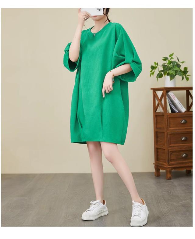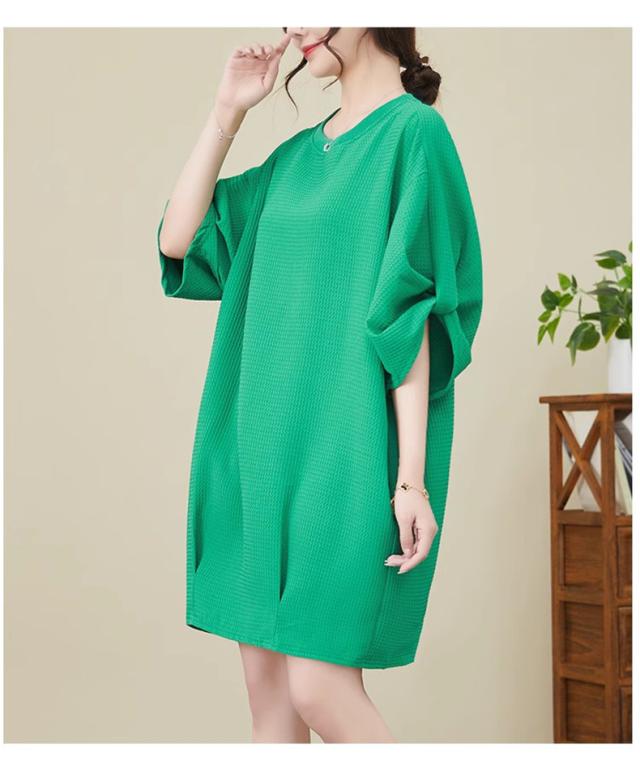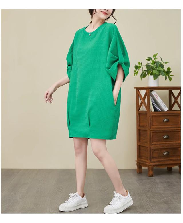 ワンピース レディース 夏新作 半袖 さりげなく体型カバー 無地 きれいめ レトロな大人カジュアル 大きめ 通勤 テレワーク