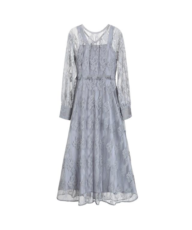 インナーのキャミソールワンピースに総レースのチュールワンピースを重ねたレイヤードスタイルのワンピースです。