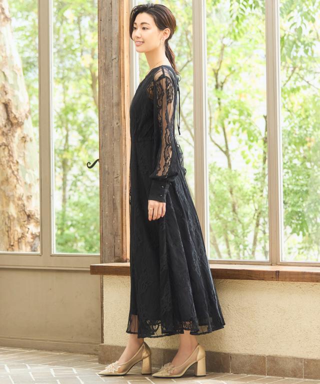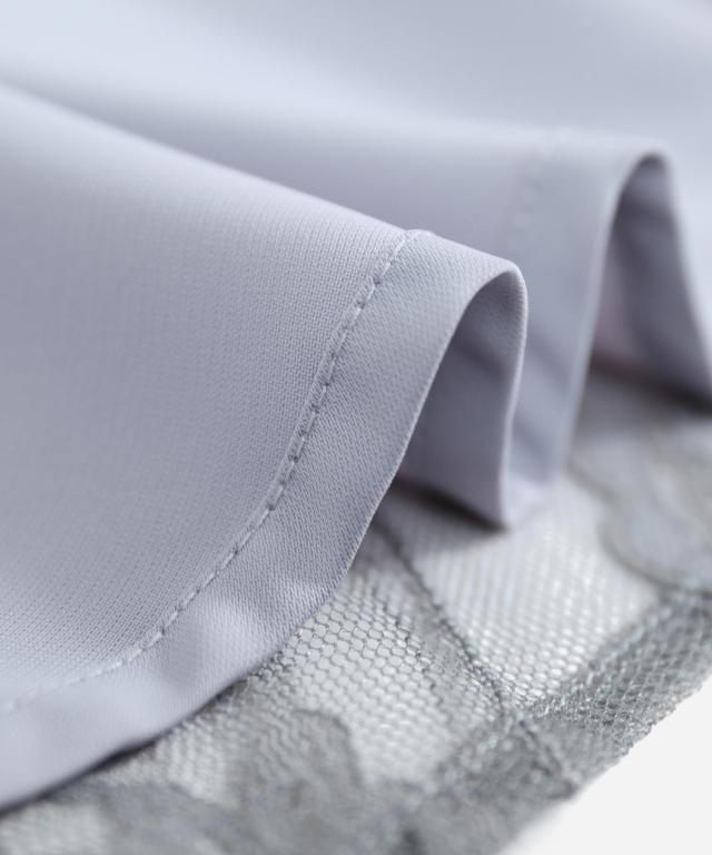 センシュアルなレースの肌見せと揺れ感たっぷりのAラインフレアがエレガントな一枚です。