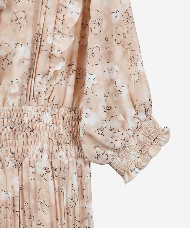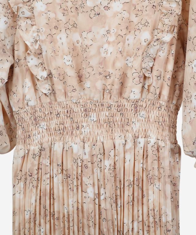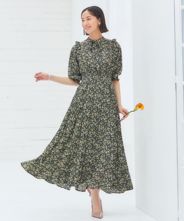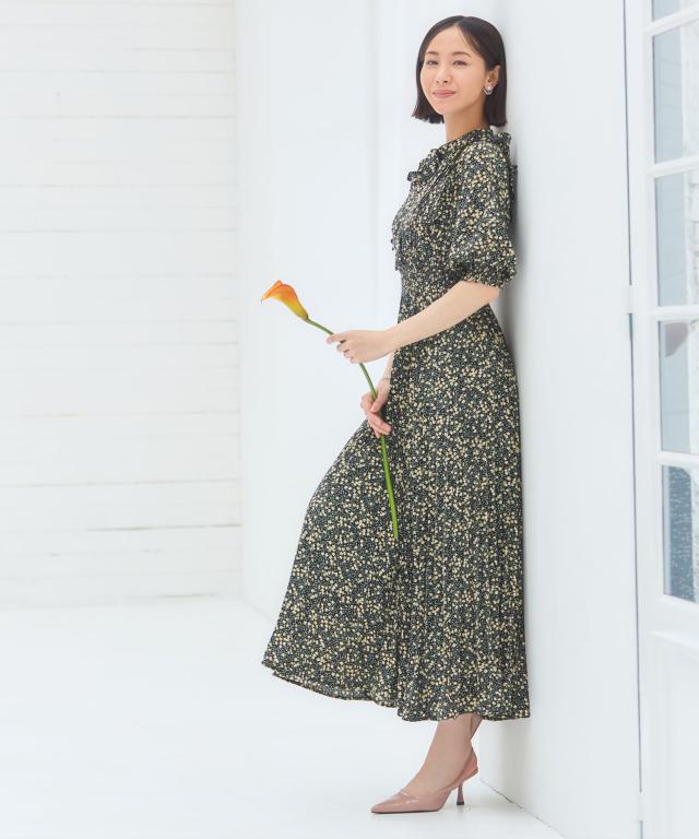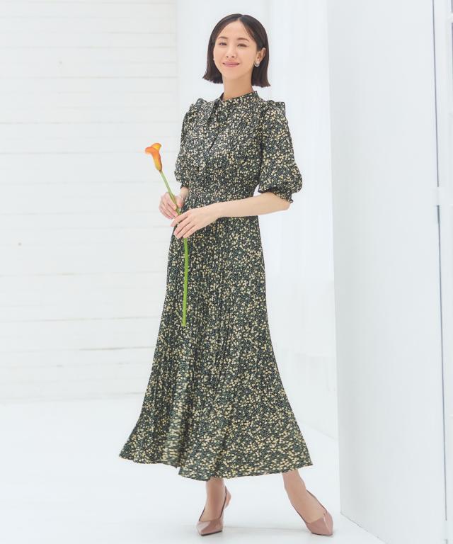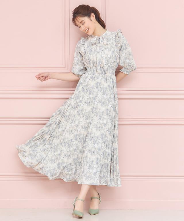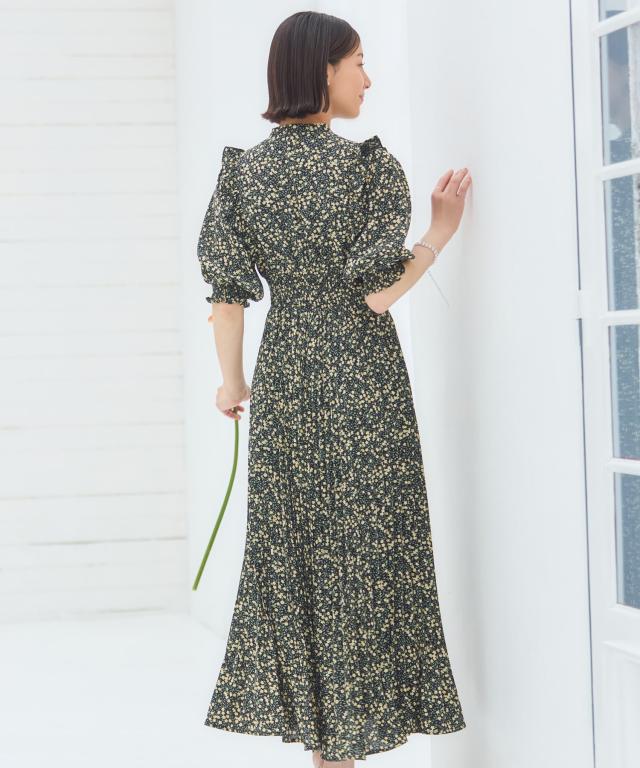 ドレスプラス(DRESS+)/ワンピース 花柄 レトロ柄 半袖 プリーツ ミモレ丈 ミディ丈