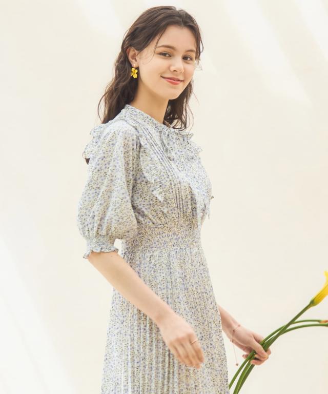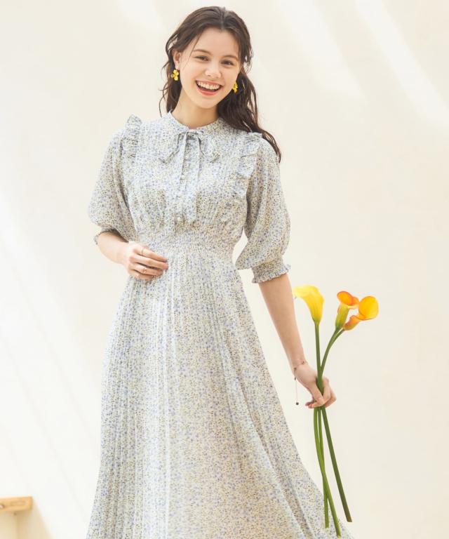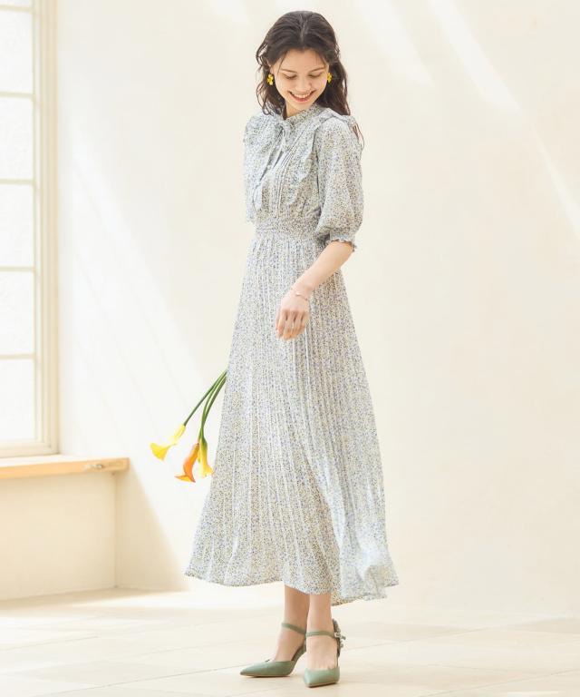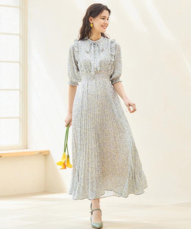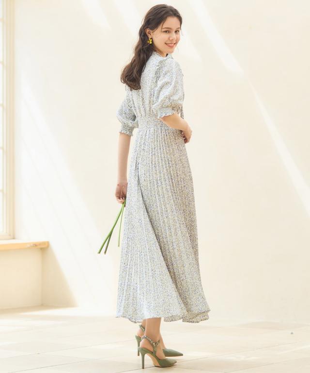 レトロ可愛い小花柄のプリーツワンピース