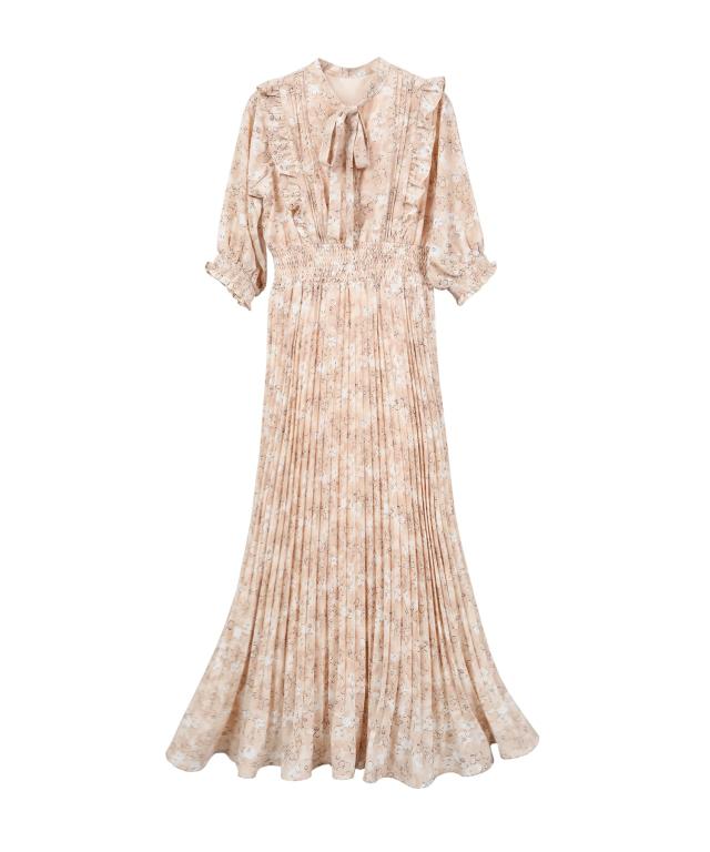 人気のプリントプリーツワンピースが柄を新たに再登場。