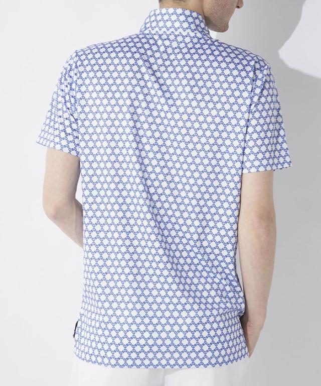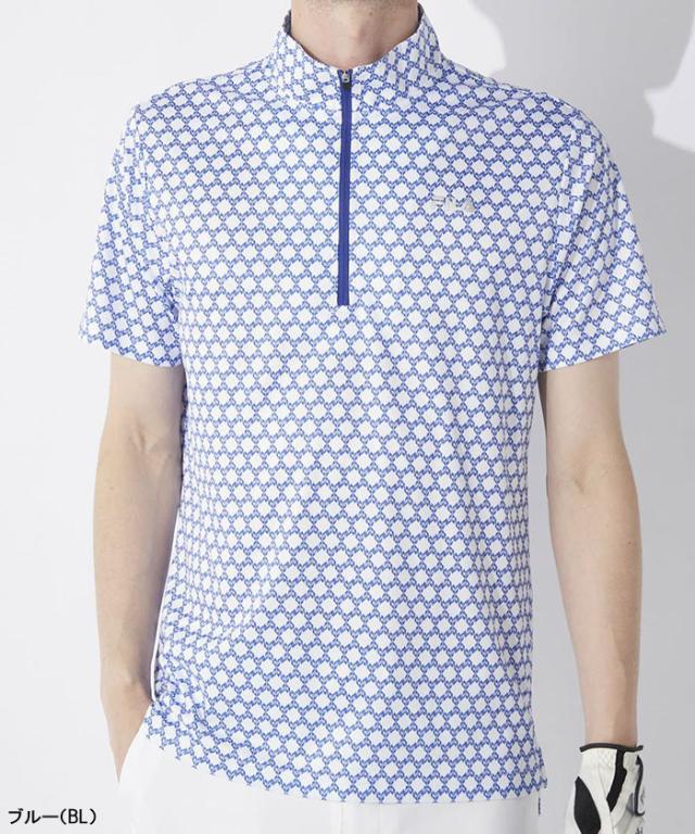 軽くてストレッチ性の高い小柄ロゴプリントのハーフZIPシャツ。コーディネートが組みやすい一枚です。裾のスリットがお腹周りのしわ軽減させてくれます。また、高級感のあるシリコンプリント入り。