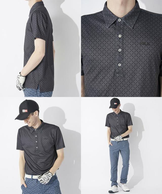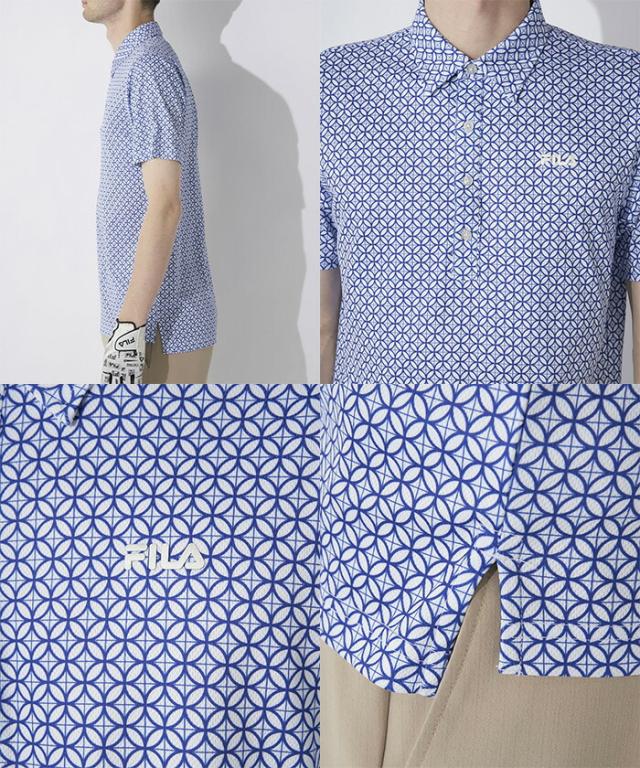 フィラ ゴルフ 半袖 ポロシャツ 家紋柄 半袖シャツ メンズ 743-646 ゴルフウェア 吸汗速乾 UVカット