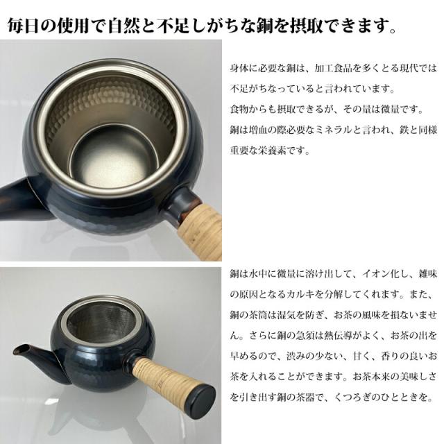 純銅横手急須 ストレーナー付(茶こし) 日本製 銅製品の持つ重厚な質感を茶器に施した急須 お茶本来の美味しさを引き出す銅の茶器 ![]() ![]() ![]() ![]() ![]() | ||||