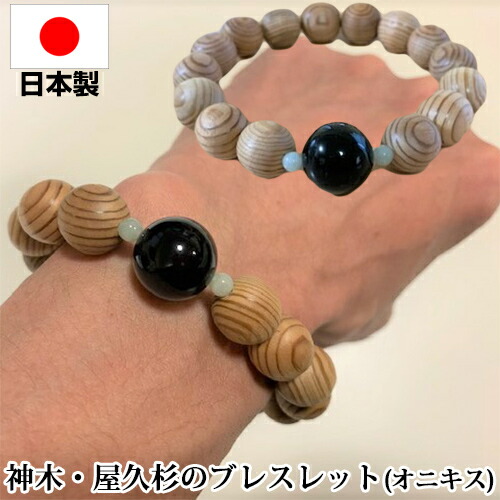 神木・屋久杉のブレスレット(親玉オニキス) 神木と言われる屋久杉で作られたブレスレット ワンポイントのオニキスが光る ![]() ![]() ![]() | ||||