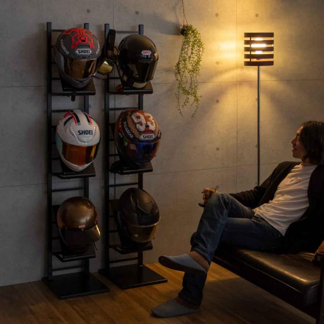 お気に入りのヘルメットを魅せながら省スペースに収納できるヘルメットスタンド「GALEA(ガレア)」です。