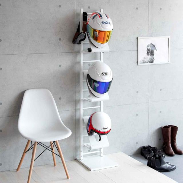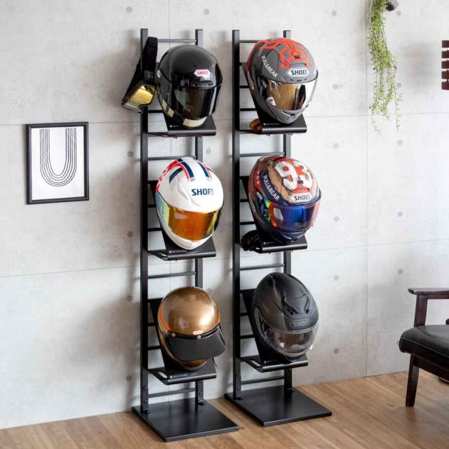 スタンドを複数並べれば、コレクションをキレイに飾れます。別売りのヘルメットフックを追加すれば最大3個ヘルメットを収納できます。あとから設置できるので、ご購入後いつでも増やせます。