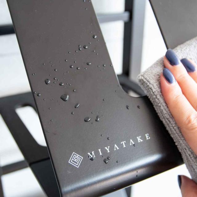 強度の強いスチールに水や傷に強い塗装を施した素材なので、しっかり収納物を支え、ガレージや倉庫などバイクと一緒にも置いても安心です。