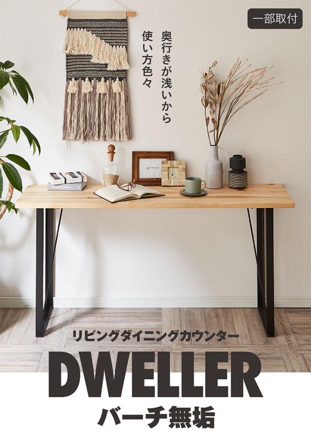 【バーチ無垢材使用】ダイニングカウンターテーブル 幅150cm DWELLER(ドゥエラー) ダイニングテーブル リビングテーブル 食卓テーブル ミーティングテーブル 机 天然木 2人用 スチール脚 おしゃれ シンプル 木製