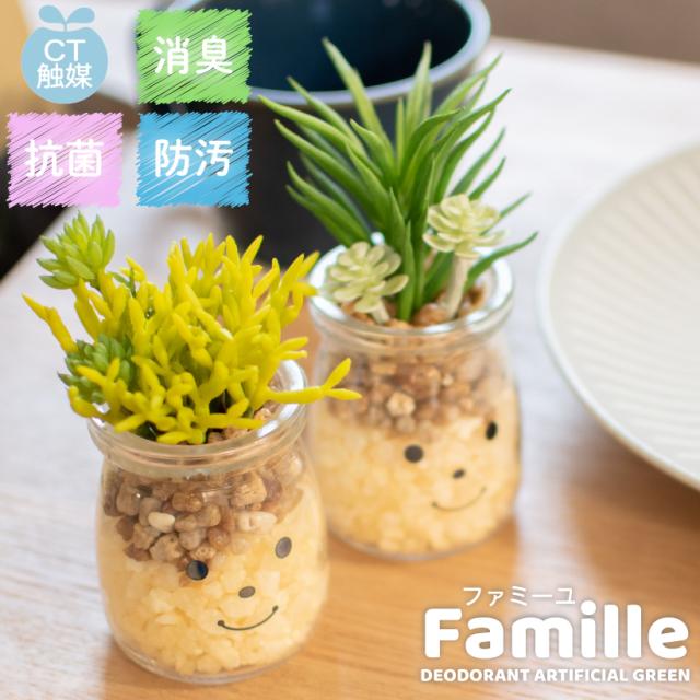 フェイクグリーン 多肉植物 サボテン 風水 人工観葉植物 造花 消臭アーティフィシャルグリーン おしゃれ リビング ダイニング 玄関 キッチン トイレ ナチュラル グリーン 消臭 防汚 抗菌 寄せ植え CT触媒 ギフト 母の日 Famille ファミーユ S