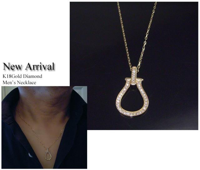 ネックレス 男性用 メンズ 18金 k18 18k 天然 ダイヤモンド ホースシュー 馬蹄 計0.15カラット 品番um-022 2営業日前後の発送予定