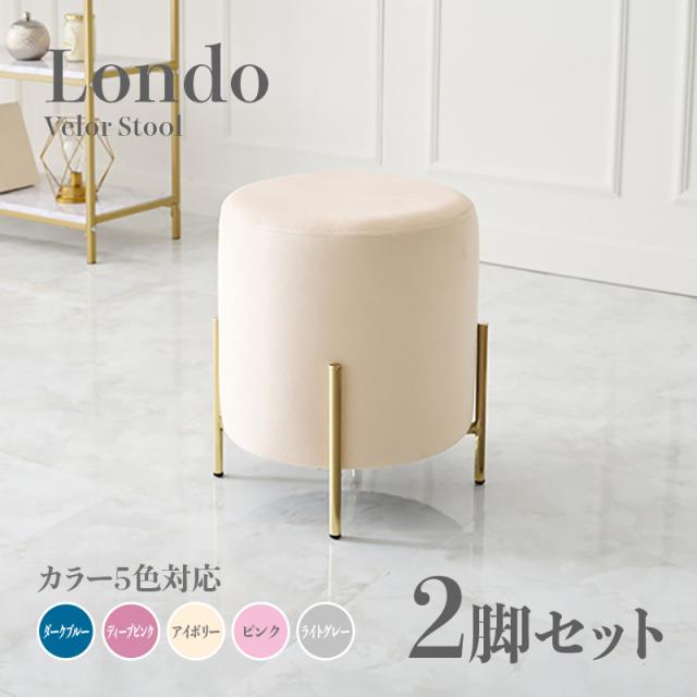 Londo スツール【2脚セット】小椅子 アイボリー ディープピンク ダークブルー ライトグレー ピンク スタッキング可能 ベロア 姫系 スタイル ドレッサースツール チェアー 店舗用 コントラクトにもオススメ