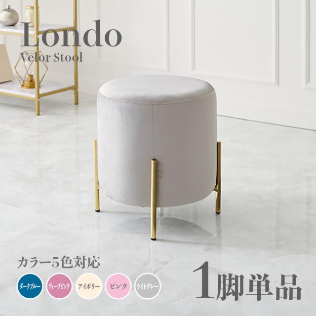 Londo スツール【1脚単品】小椅子 ライトグレー ディープピンク ダークブルー アイボリー ピンク スタッキング可能 ベロア 姫系 スタイル ドレッサースツール チェアー 店舗用 コントラクトにもオススメ