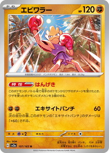 収録:ポケモンカード151 コレクションナンバー:107/165 種類:ポケモン タイプ:闘 カード名:エビワラー レアリティ:U