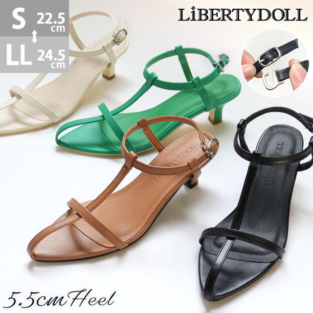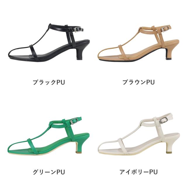 サンダル Tストラップ レディース ポインテッドトゥ 5.5cmヒール レザー 合皮 おしゃれ No.4174 22.5-24.5cm 黒 ブラウン グリーン アイボリー シルバー リバティードール