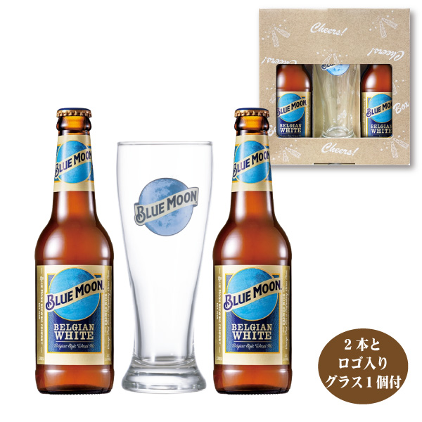 BLUE MOON Bottle ブルームーン 瓶 330ml×2本とロゴグラス ギフトBOX入り ホワイトエールビール 白鶴