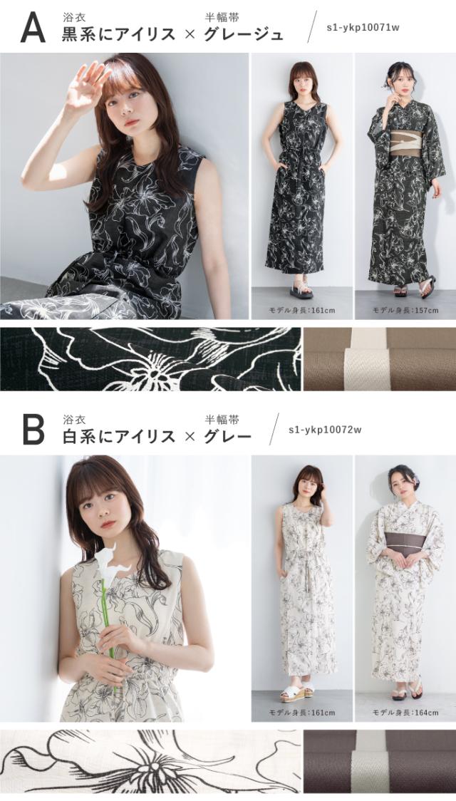 浴衣 セット レディース 二部式浴衣 floro セパレート ワンピース 浴衣セット 半幅帯 2way 大人 3点セット 簡単 悩まない 涼しい コーディネート済み モダン 黒 白 花柄 おしゃれ 可愛い フリー 送料無料
