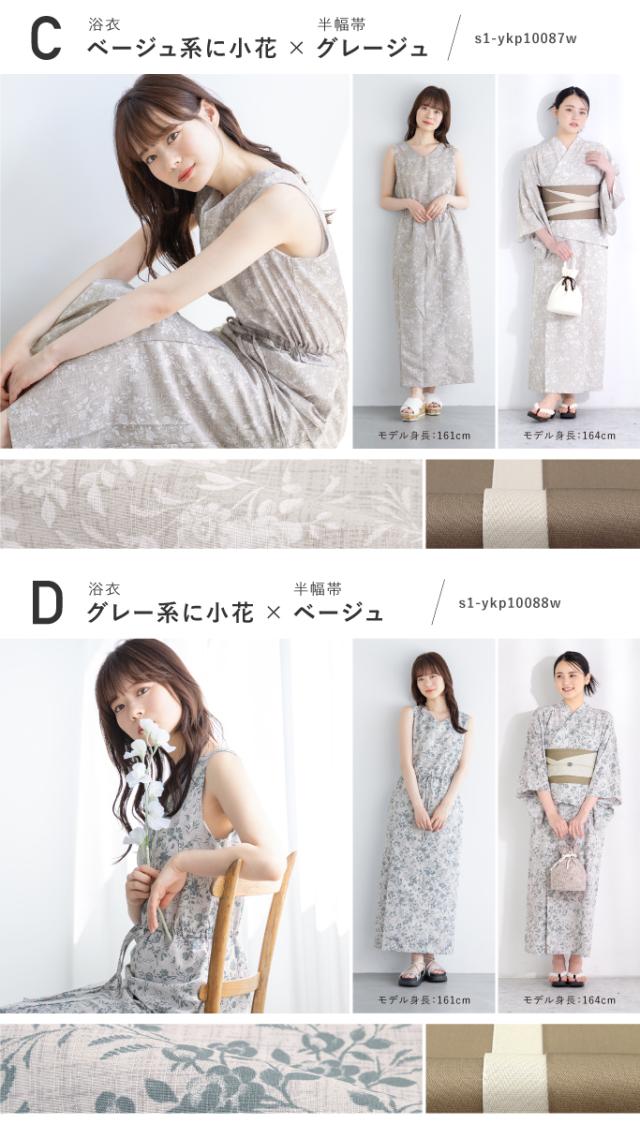 コーディネート済みの女性用ワンピース浴衣セットです。