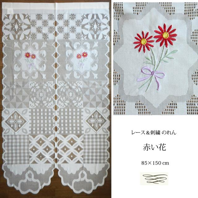 送料無料 のれん レース 刺繍 赤い花 マーガレット ガーベラ ガーベラ アネモネ ギンガムチェック パッチワーク りぼん 昭和 レトロ インテリア ハッピー ラッキーアイテム ファンシー ファブリック カーテン 壁掛け パーテーション 仕切り パーティション 子供部屋 玄関先