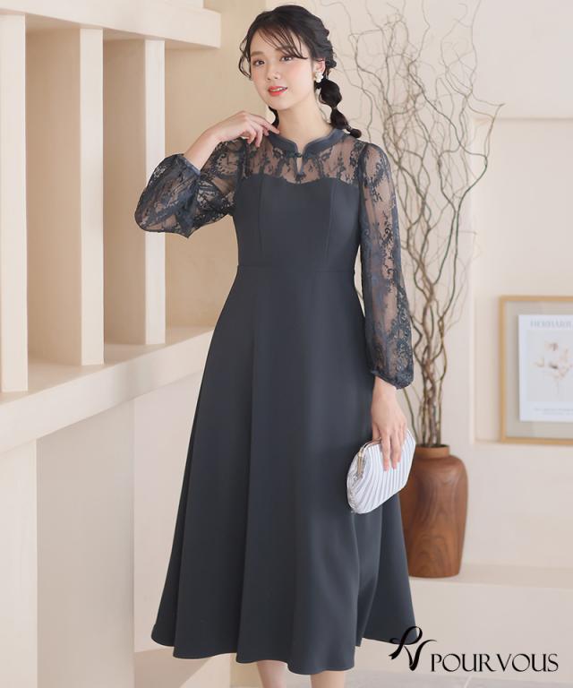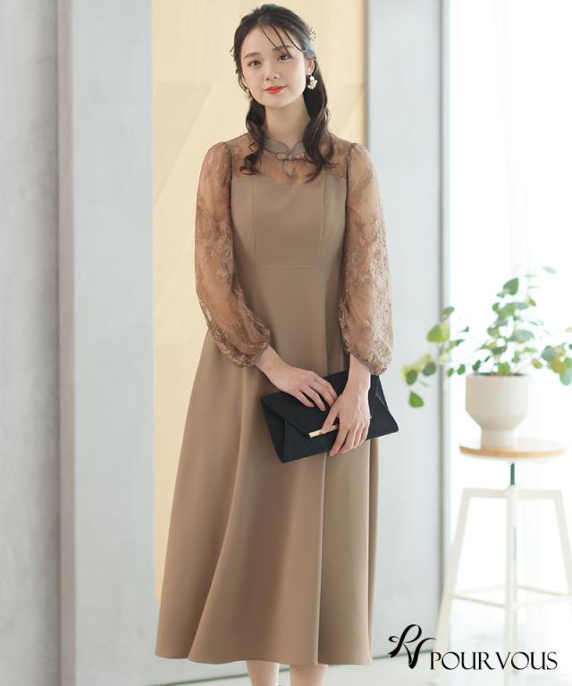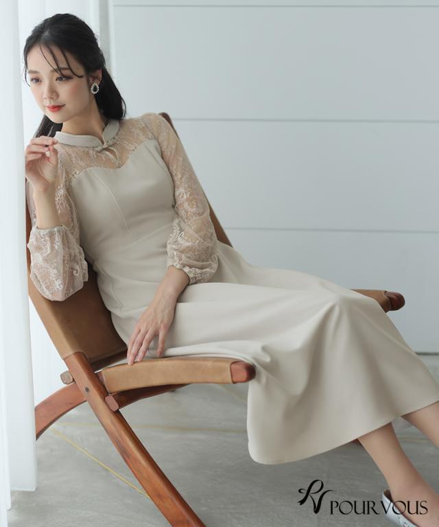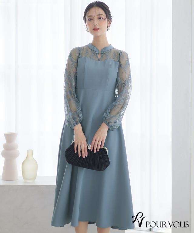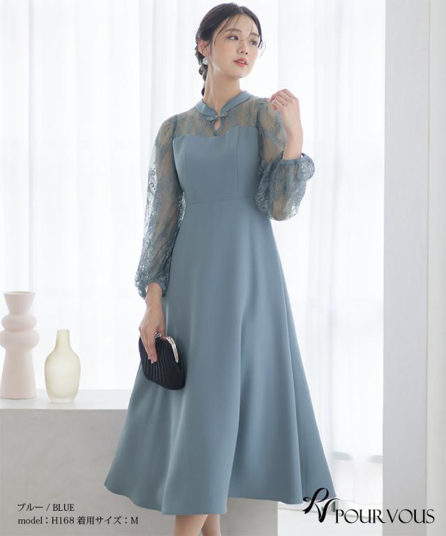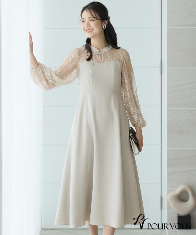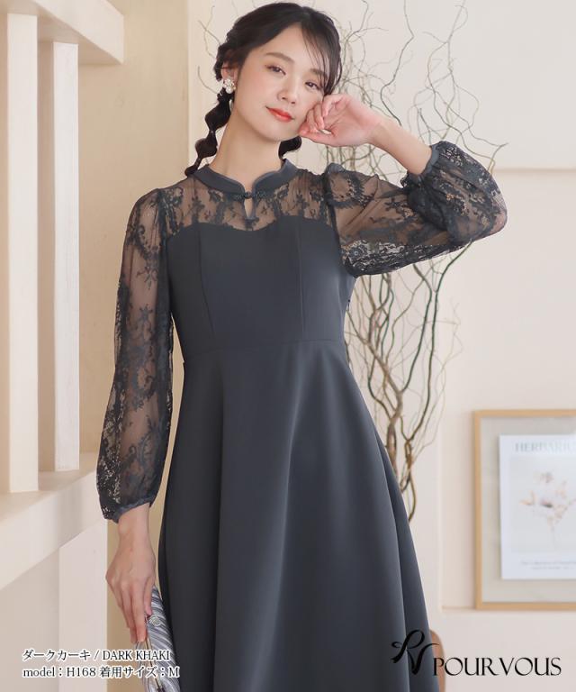 袖レース切り替えチャイナ風レースアップワンピース【588231438】20代・30代・40代・54代長袖・膝丈・セットアップ・スカート・体型カバー・ジャケット・テーラード・スーツ・大きいサイズなど・即日発送・送料無料結婚式・婚活・披露宴・顔合わせ・二次会・同窓会・お呼ばれ・食事会・謝恩会・親族・七五三・お宮参り・冠婚葬祭・弔事・女子会・デート・入学式・卒業式・入園式・卒園式・ママ・マタニティー・セレモニー・セレブ・パーティー