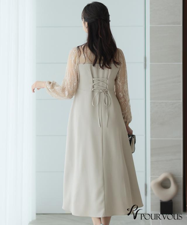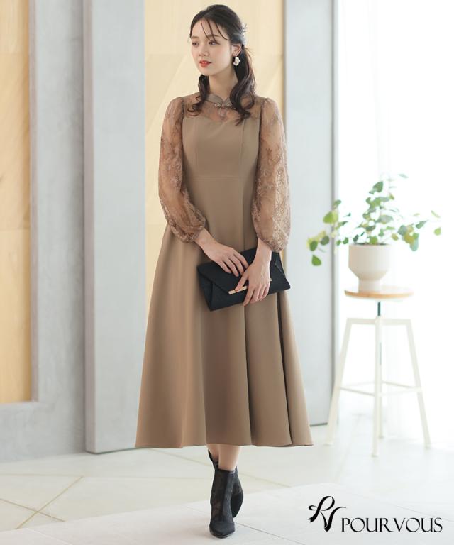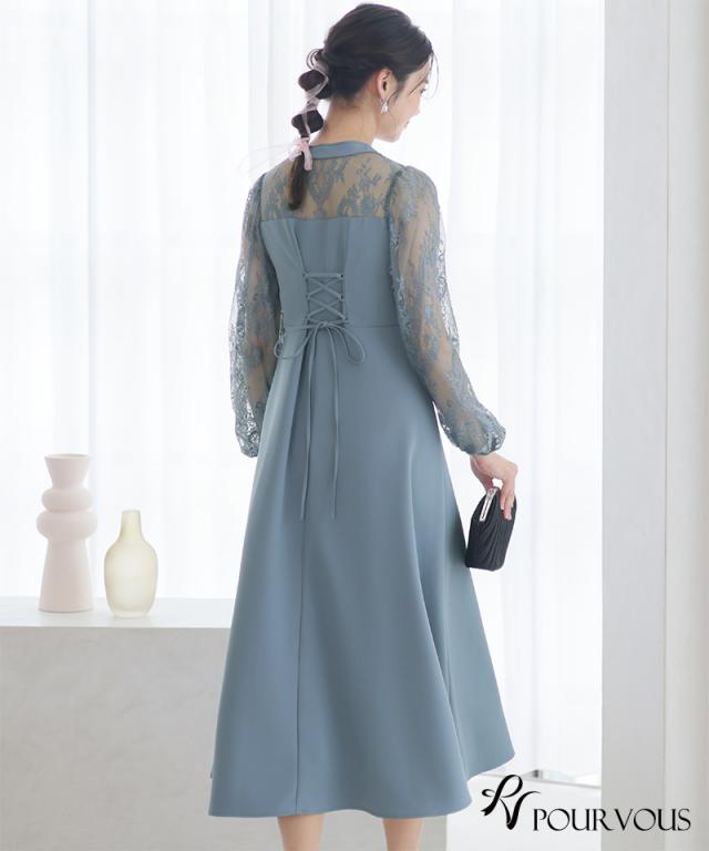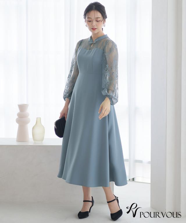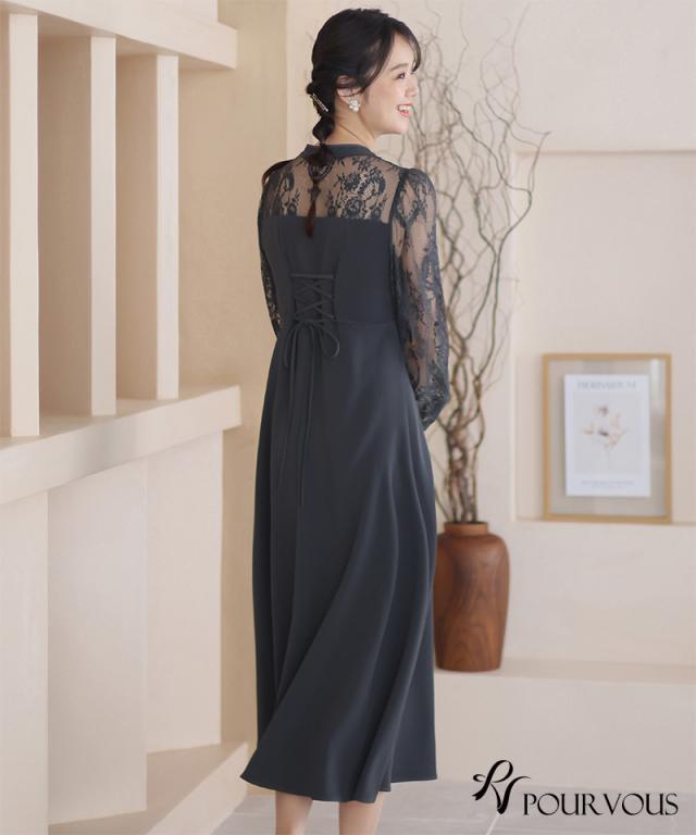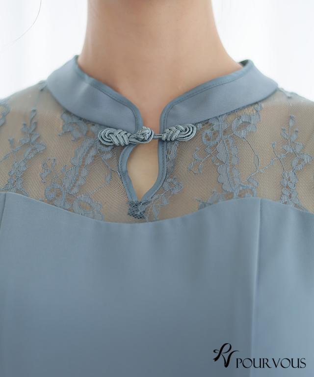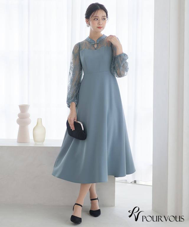 袖レース切り替えチャイナ風レースアップワンピース【588231438】20代・30代・40代・54代長袖・膝丈・セットアップ・スカート・体型カバー・ジャケット・テーラード・スーツ・大きいサイズなど・即日発送・送料無料結婚式・婚活・披露宴・顔合わせ・二次会・同窓会・お呼ばれ・食事会・謝恩会・親族・七五三・お宮参り・冠婚葬祭・弔事・女子会・デート・入学式・卒業式・入園式・卒園式・ママ・マタニティー・セレモニー・セレブ・パーティー