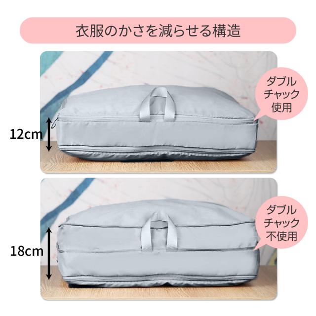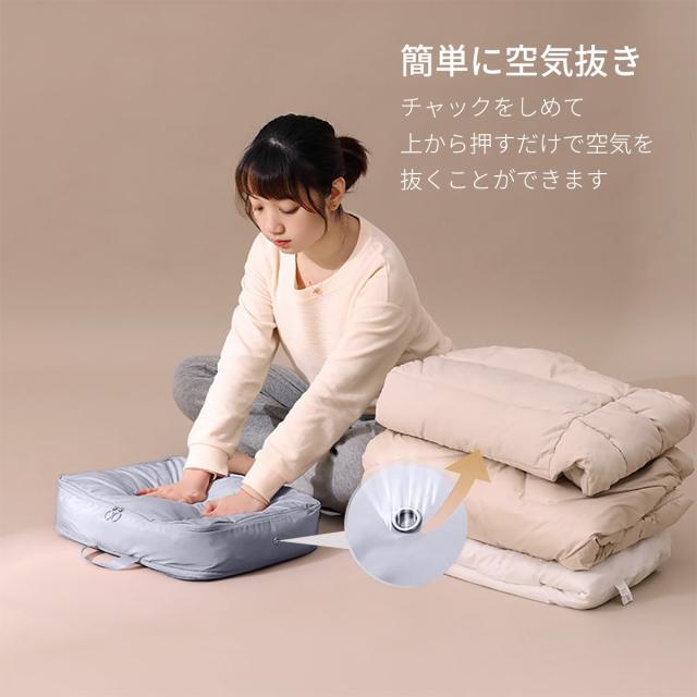 【簡単に空気抜き】チャックを締めて上から押すだけで空気を抜くことができ最大約40%圧縮できます。