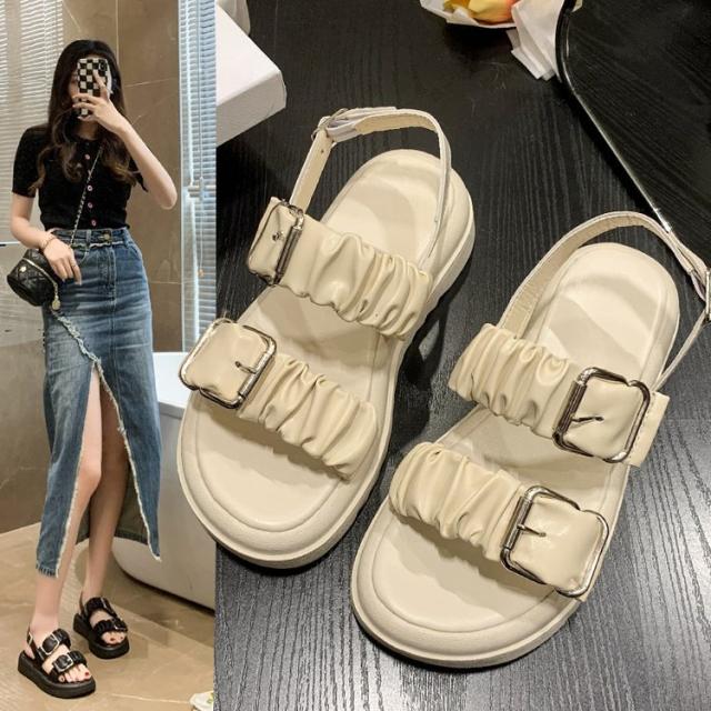 シンプル ギャザー サンダル レディース シンプル ヒール高 サンダル ビーチサンダル ビーサン お洒落
