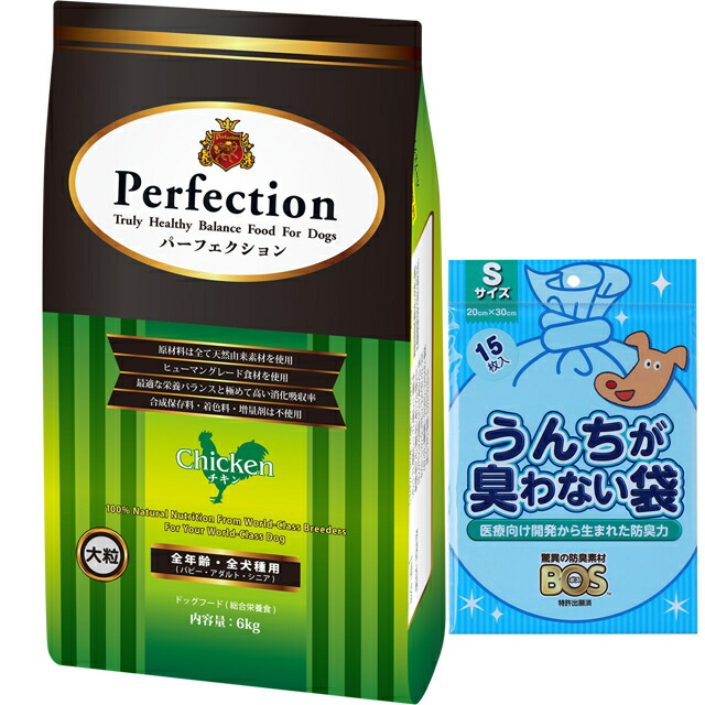 ドッグフード パーフェクション チキン 大粒 6kg【犬想いオリジナルセット】【BOSうんちが臭わない袋付】