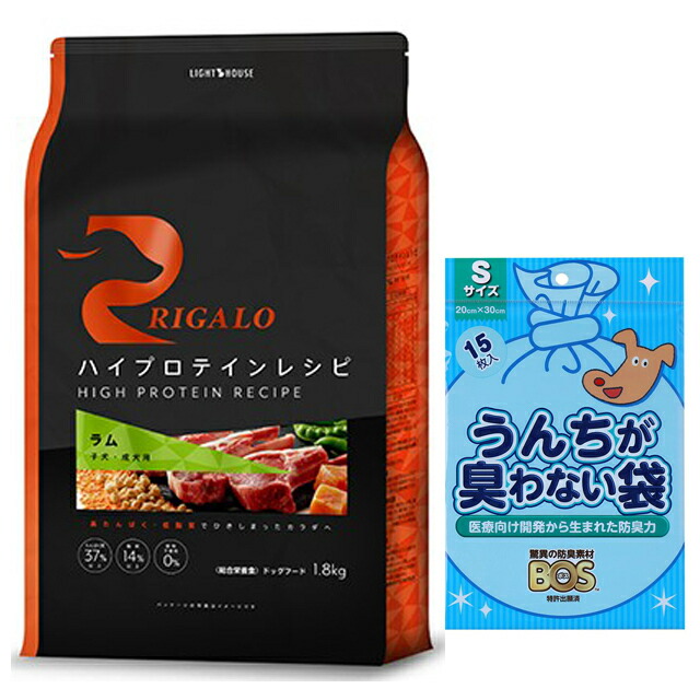 リガロ ハイプロテインレシピ 子犬・成犬用 ラム 1.8kg 【犬想いオリジナルセット】【BOS うんちが臭わない袋付】【正規品】