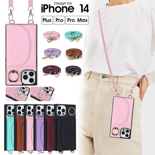 スマホケースiphone 14proカバー iphone 14promax ケース iphone 14ケース iphone 14plus ケース ネックストラップス iphone 14promax ケース iphone 14プロケース アイフォン14プロマックスケースマホショルダー 背面 リング付き リング レザー シンプル スタンド おしゃれ