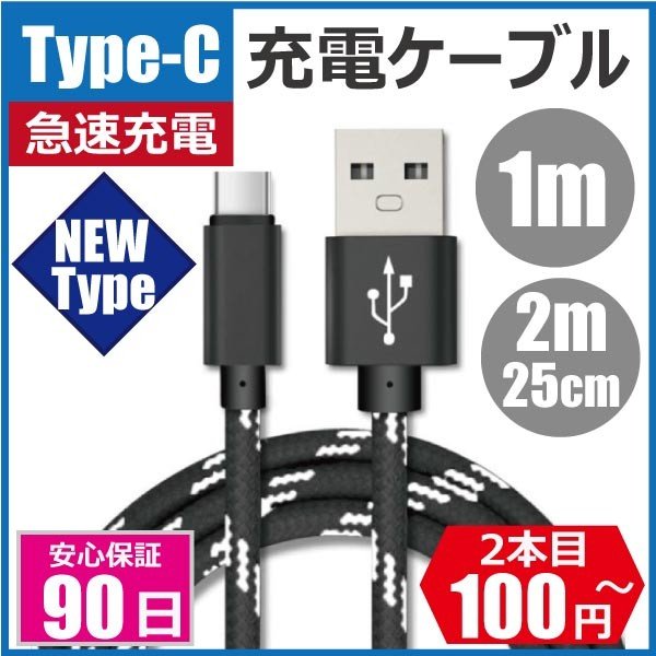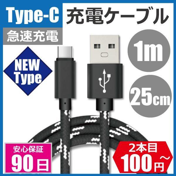 Type-C 充電ケーブル Android Switch mac 1m 25cm 2m USB 急速充電 断線防止 データ転送 AQUOS Galaxy Xperia HUAWEI