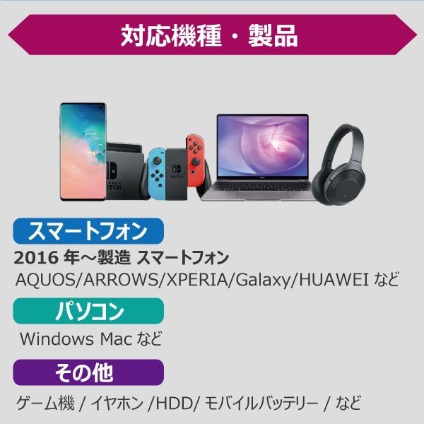 iPhone15/iPhone16/iPad/Google Pixelシリーズ/AQUOS senseシリーズ/AQUOS wish2/AQUOS sense5G/Xperia Ace III/LG VELVET/iPhone15は非対応です。