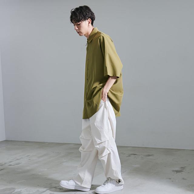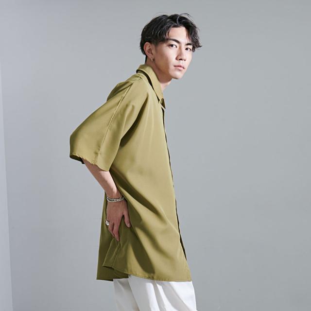 トレンドのオーバーサイズで仕上げた半袖シャツ。