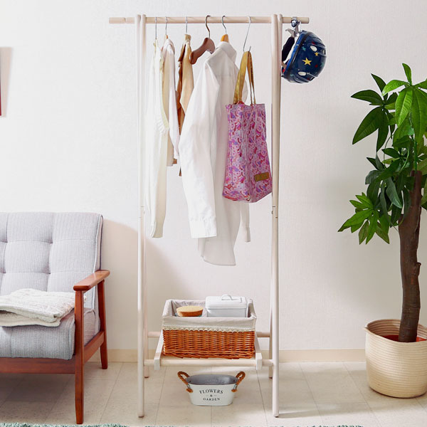 ハンガーラック 木製 おしゃれ スリム コートハンガー 北欧 こども コート掛け 鞄置き 衣類収納 省スペース 頑丈 収納 ラック ホワイト 白 リビング収納 ワードローブ 可愛い